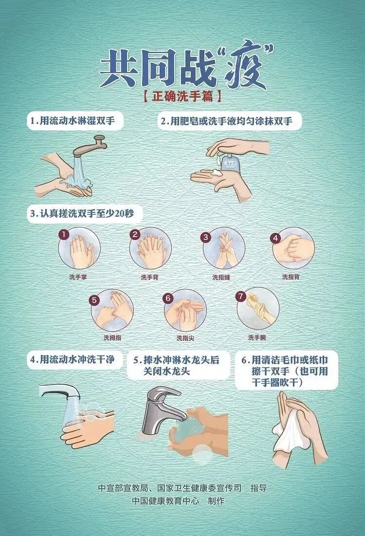 新冠病毒有脂质包膜,难以被水破坏,洗手时需要使用皂液在作用一定时间后,才能起到清除病毒的作用。使用肥皂和流动的水,使用正确的七步洗手法,搓手时间不低于20秒。